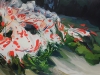 Claire Haik’s oil paintings on canvas are abstractions of natural imagery. Informed by scientific propensities, these images show the hidden processes that exist beneath the visual exterior. Her recent work explores the relationship between a parasitic plant–The Golden Dodder–and its environment. Underlining the inherent distortions created by scientific inquiry and artistic representation, Haik shows how selected variables and the symbols used to represent them completely alter the meaning and outcome of an investigation.